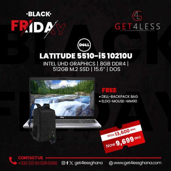Dell Latitude 5510-Core i5 G10 8GB RAM 512GB SSD 15.6″ Touch with Free Eldo WM90 Mouse and Dell Backpack