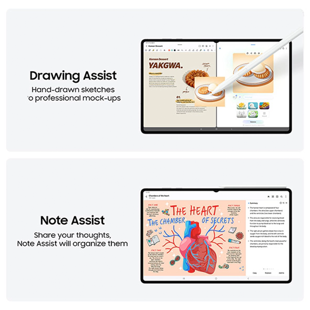 Effortlessly write and take notes with Galaxy AI. Note Assist automatically summarizes lecture and meeting notes. Writing Assist fixes errors and adjusts writing style to find just the right words, just like that.