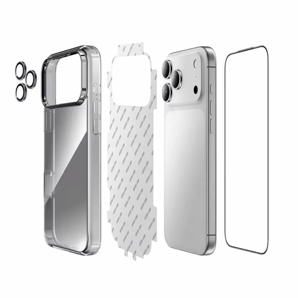 The Green Lion 4-in-1 Defense Pack is the perfect companion, designed to fully protect your iPhone 17 and iPhone 17 Pro Max without compromising their original style. The pack includes a camera lens protector, a soft 3D PET screen protector, and a nano HD back film, keeping your phone fully protected against scratches, drops, and everyday wear and tear. The shock-resistant, impact-resistant cover with 3D HD PET glass provides exceptional clarity and responsiveness, making the screen feel like the original. Designed for durability, it features anti-fingerprint properties and 9H hardness, ensuring maximum scratch resistance. This pack offers continuous, 24/7 protection, keeping your iPhone safe without affecting its sleek and premium look. The Green Lion 4-in-1 Defense Pack is the ideal protection against everyday wear and tear or accidents; it does so quietly while promising lasting protection in one convenient package.
