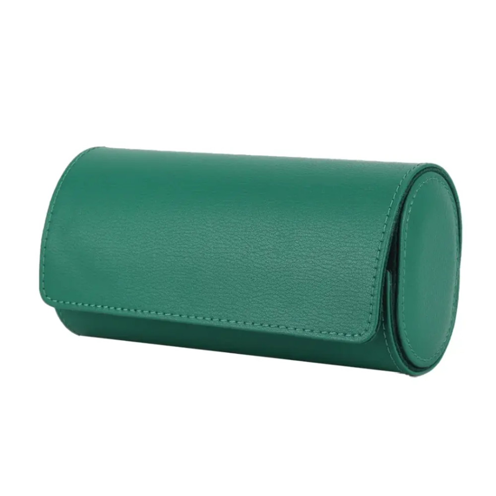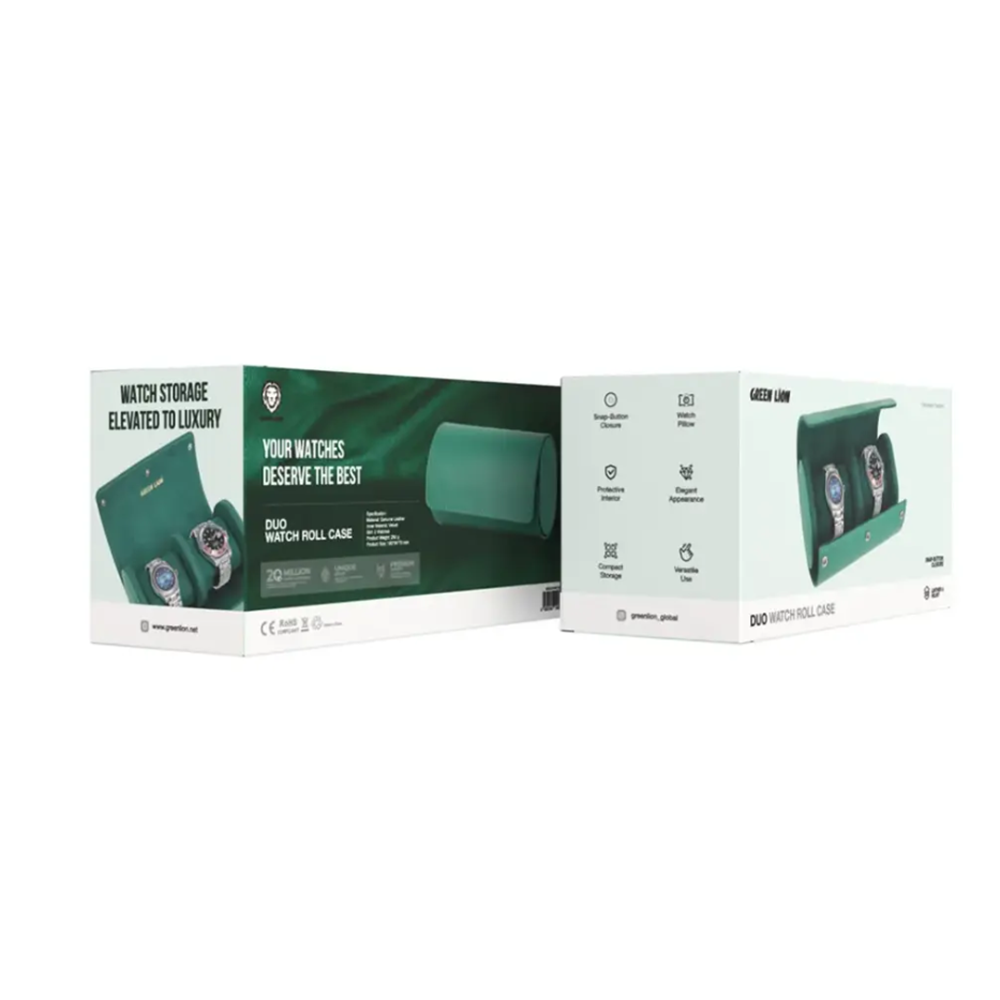 The Green Lion Duo Watch Roll Case in Rolex Green is a stylish and protective case made to store treasured timepieces. It is crafted with real leather and a plush velvet interior, making this case a good choice while offering the best protection. This has slots made for two timepieces with soft watch pillows so that the watches keep their shape and protection from scratching. The snap button keeps your pieces secure while traveling or stored. It’s compact enough to fit into a bag or drawer easily and perfect for the road or in-home use. Whether accommodating luxury watches or everyday timepieces, this case brings style and function for multifaceted use.