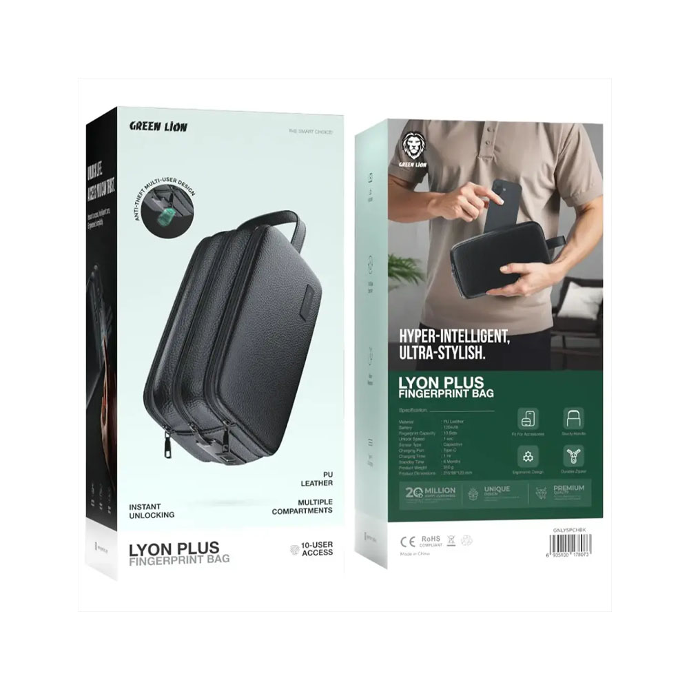 The Green Lion Lyon Plus Fingerprint Bag is an elegant, practical bag made from the finest PU leather. Equipped with a capacitive fingerprint sensor, it provides instant unlocking and access to your items in just one second. The bag has a capacity of 120 mAh, allowing for the storage of up to 10 fingerprint sets, thus making it quite easy for multiple users to use. It has a super-long standby time of 6 months and fast charging in 1 hour through Type-C. It has an ergonomic design for comfort during carrying, and a quality zipper also gives it a little bit of assurance. The bag contains various compartments, allocating enough space for accessories plus an additional leather strip for a stylish touch. The bag, with access for ten and capable of instant unlocking, along with all this convenience and security, is the definition of time-tested aesthetic!