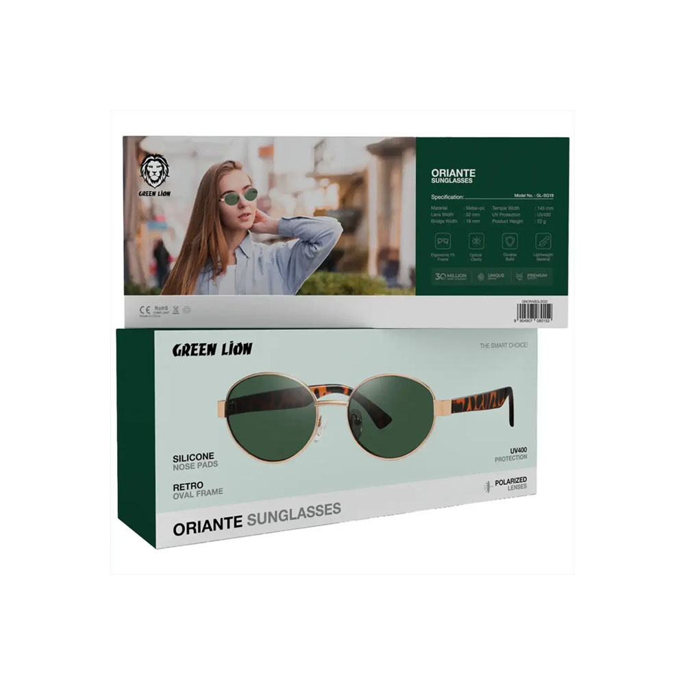 Gold-tinted, the Green Lion Oriante Sunglasses are an extravagant and bold fashion statement that reveals, at the same time, the nice and practical side of the product. The sunglasses made of top metal and PC materials have a robust but light structure, allowing the wearer to use them throughout the day without feeling any irritation. The ovoid mainframe is based on the retro style, but the silicone nose-pads are the ones providing the perfect soft touch. The polarized and anti-glare lenses are a very important part of the Oriante Sunglasses since they give perfect visual clarity, and at the same time, the reflections and eye strain are reduced even on the sunniest days. Furthermore, the UV400 protection makes the sunglasses not only block the UV rays but also protect the eyes, thus making them perfect for driving, hiking, and other outdoor activities. The sunglasses have an 18mm bridge, 152mm lens, and 145mm temple, so that they can be worn by many people and there won’t be a problem even for the largest and smallest faces. The chic gold plating not only completes your outfit but also takes the quality up to such an extent that Green Lion Oriante is the ultimate combination of style, comfort, and utility.