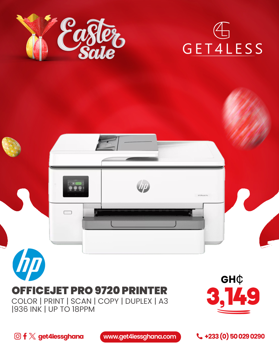 HP OfficeJet Pro 9720-Color Print Scan Copy Fax Duplex A3 953 Ink