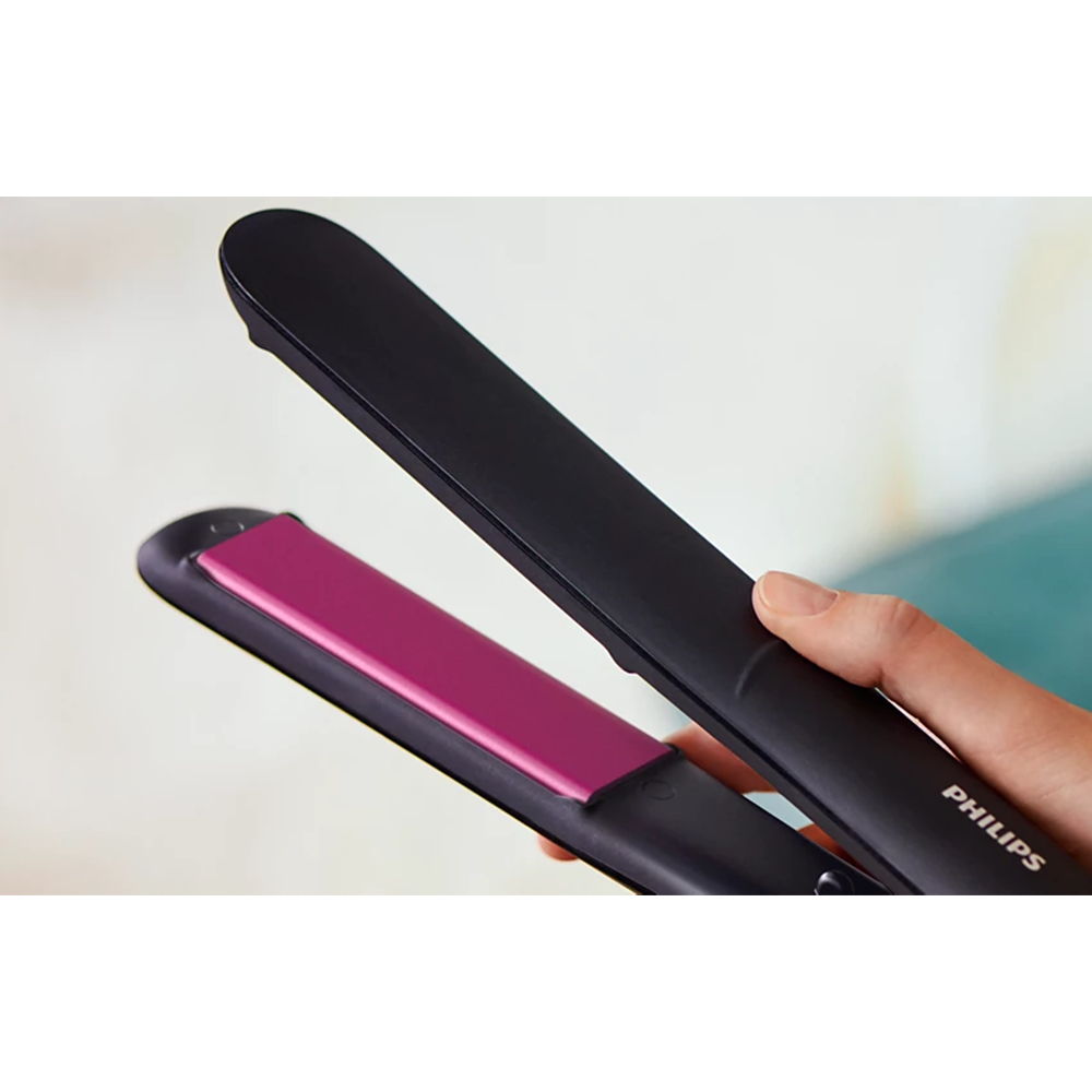 The longer 100 mm plates enable better contact with the hair to help you achieve perfect straightening results more easily and in less time.