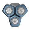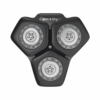 1. Press the release buttons and detach the shaving head holder. 2. Turn the retaining rings counterclockwise and remove them. 3. Remove old shaving heads and insert replacement (notches should fit exactly onto the projections). 4. Place retaining rings back and turn them clockwise until you hear a click. 5. Insert the shaving holder back and close.