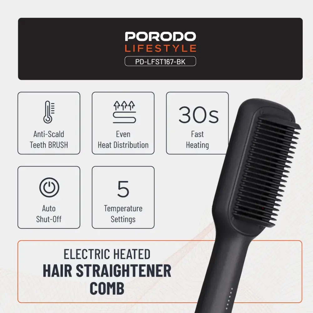 Porodo Lifestyle 33W Electric Heated Hair Straightener Comb – Black