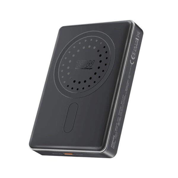 Promate 10000m Ah Ultra-Compact Aluminum Crafted MagSafe Compatible Wireles Charging PowerBank-Black
