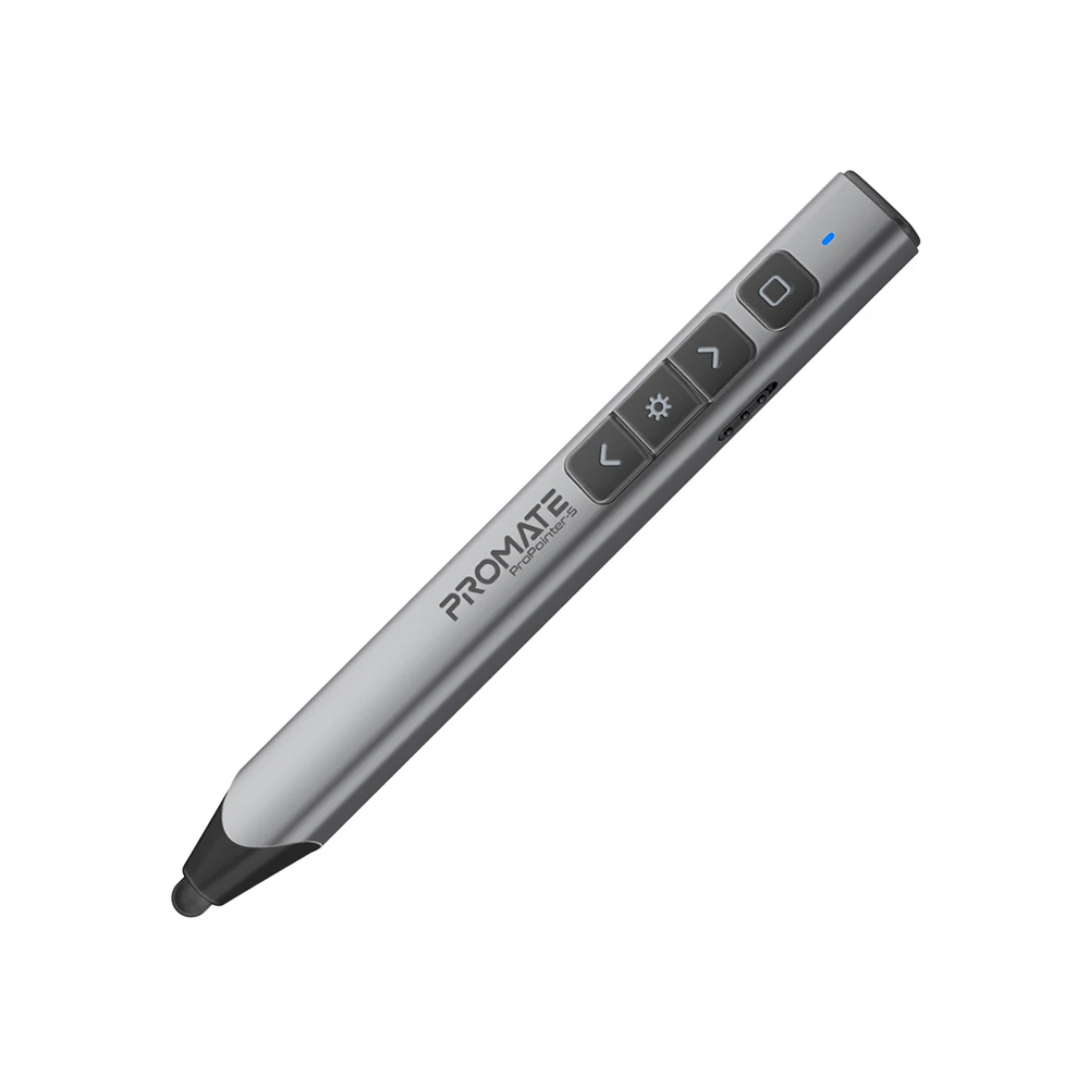 Promate’s ProPointer-S is the ultimate universal wireless presenter and multifunctional stylus pen, elevating your presentation experience and creativity. Ideal for business professionals and educators, this sophisticated device effortlessly combines laser pointing, wireless presenting, writing, and drawing, on both capacitive and infrared screens. Its intuitive design features one-touch presentation controls, a brilliant green laser pointer with a 200m reach, and a remarkable 50m wireless working range enabled by 2.4GHz RF technology. Enjoy stable connectivity, universal compatibility, and the ease of plug-and-play functionality. With a dedicated power switch and a built-in 220mAh lithium battery, the ProPointer-S guarantees long-lasting performance, making it the essential tool for captivating presentations and boundless productivity.
