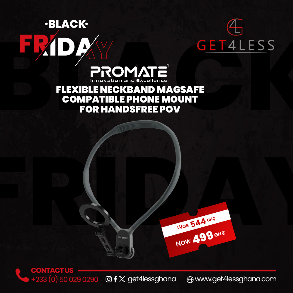Promate Flexible Neckband MagSafe Compatible Phone Mount for Handsfree POV