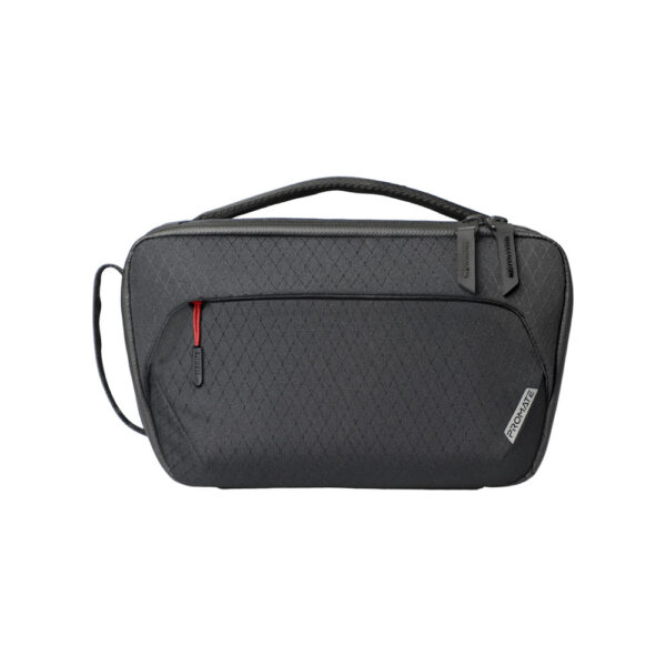 Elevate your organization game with Promate’s UrbanPouch, the ultimate, versatile accessory pouch for your daily tech essentials. Boasting multiple compartments and pockets, this pouch ensures every item has its place, while the dual carry handles offer convenient portability. A sleek leather card storage slot adds a touch of elegance, complimented by a waterproof zipper and water-resistant fabric that protect your essentials from the elements. Crafted from lightweight yet durable nylon, UrbanPouch features a stylish diamond design, making it the perfect blend of practicality and sophistication for the modern lifestyle.