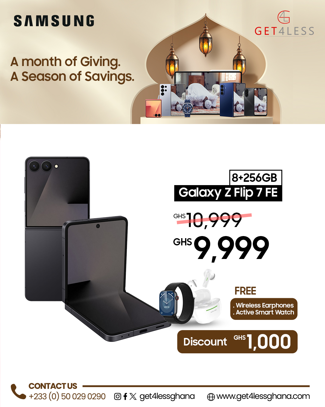 Samsung Galaxy Z Flip 7 FE 256GB 8GB RAM with free Earphones and Smart Watch