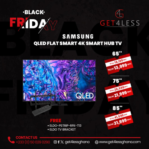 Samsung QLED 65 Flat Smart 4K Smart Hub with Free Eldo Pro Power Strip ELDO-PSTRIP-RFK-T13 and Eldo TV Bracket