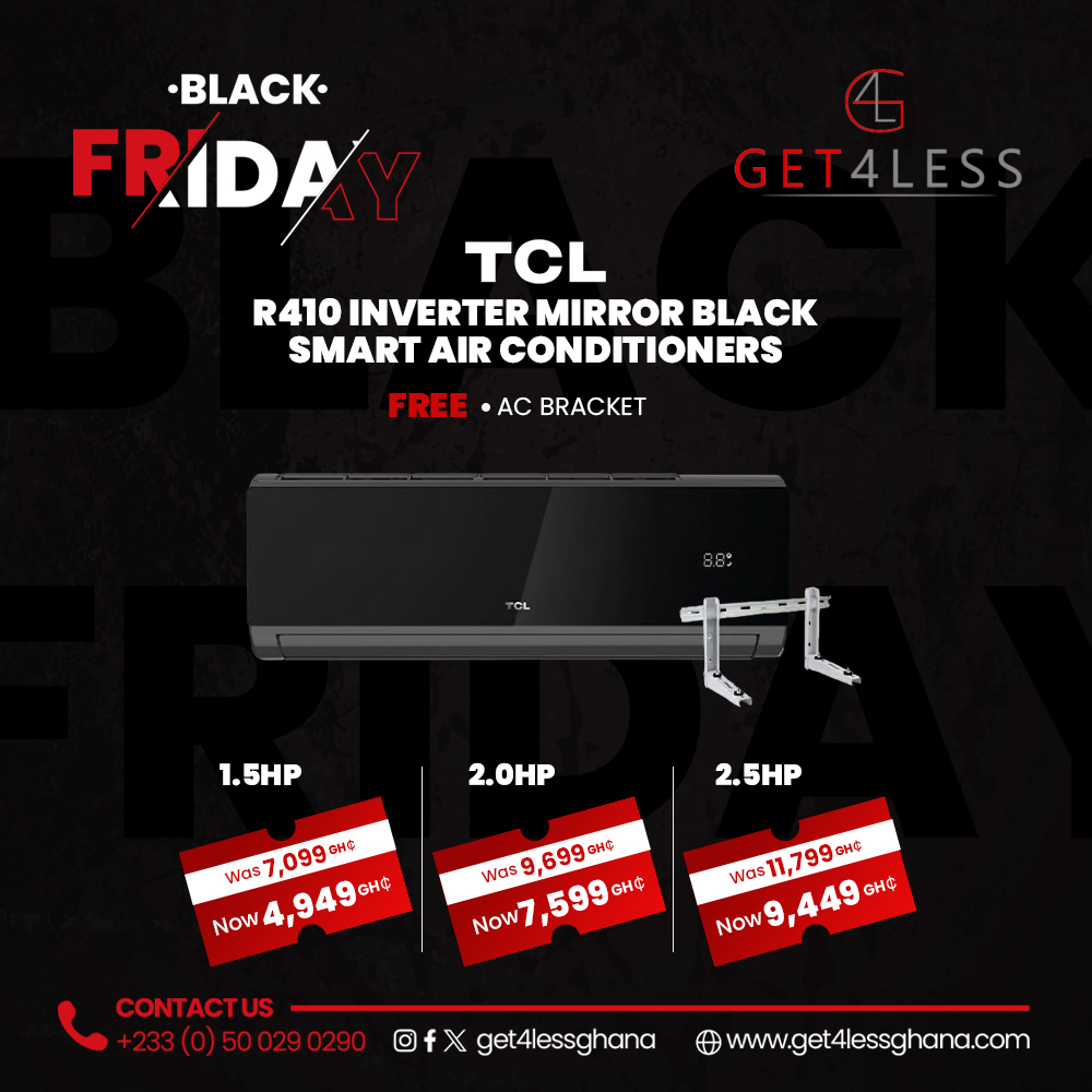 TCL AC 2.5 HP R410 Inverter Mirror Black with free Ac Bracket