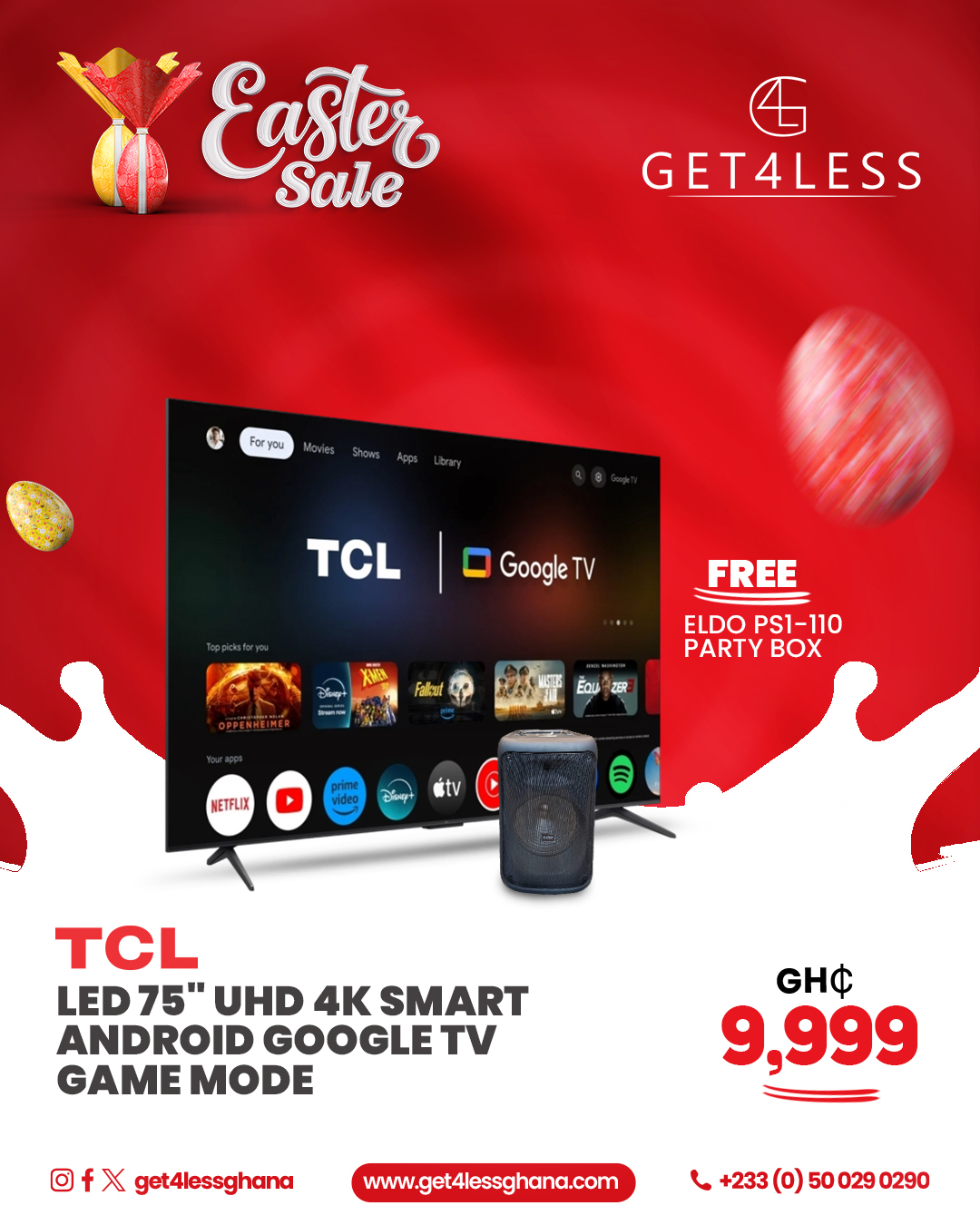 TCL LED 75 Smart Andriod Google TV Game Mode with Free Eldo Speaker