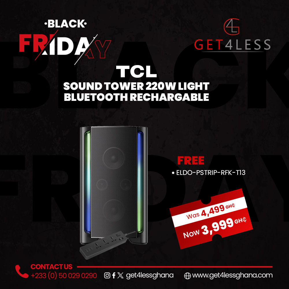 TCL Sound Tower 220W Light Bluetooth Rechargable with free Eldo Pro Power Strip ELDO-PSTRIP-RFK-T13