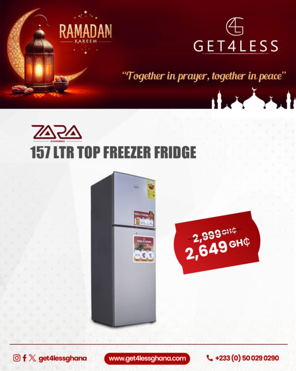 Zara Fridge 157 Litres Top Freezer Lock Dark Silver With Free Kettle