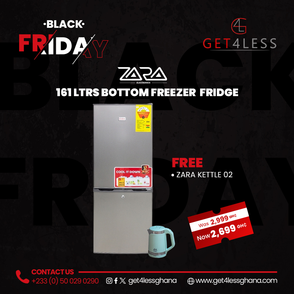 Zara Fridge Bottom Freezer 161 Litres Silver with free B-ZA-002B kettle