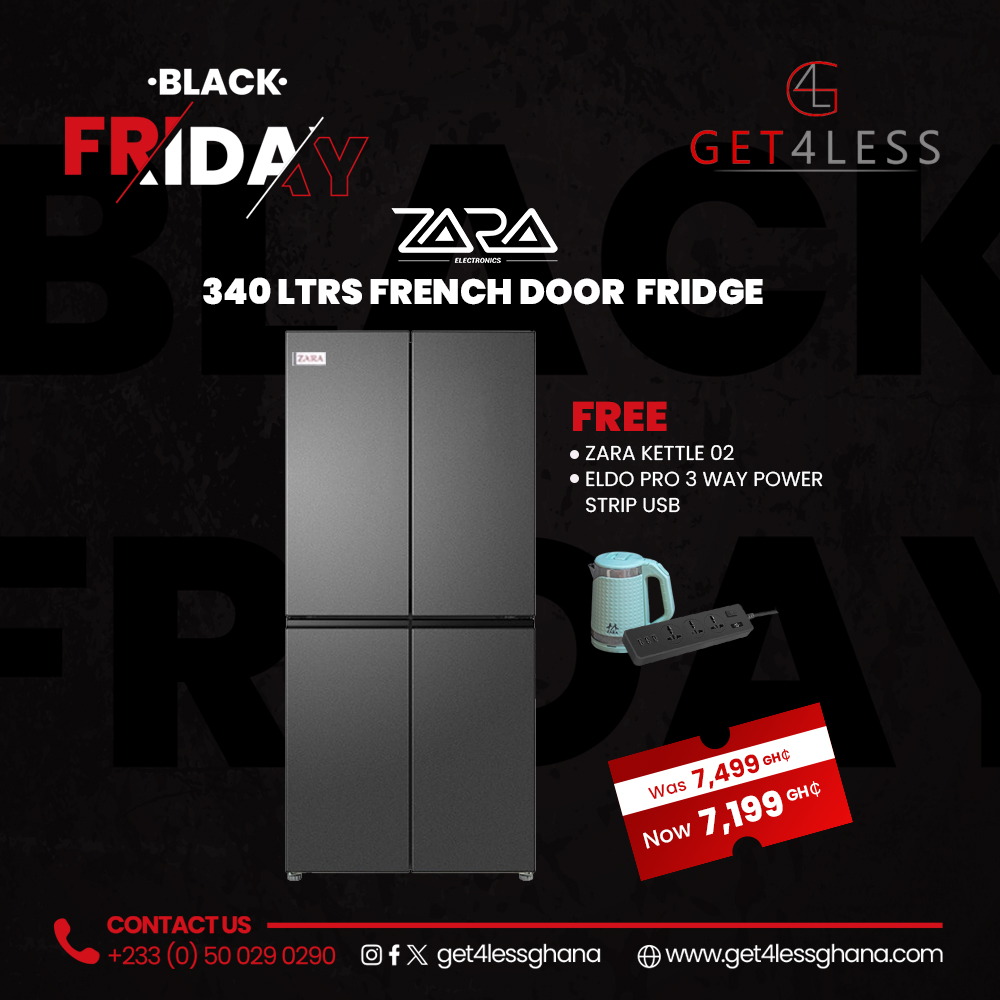 Zara Fridge French Door 340 Ltrs Net Silver Free Eldo Pro Power Strip ELDO-PSTRIP-RFK-T13 and B-ZA-002B kettle